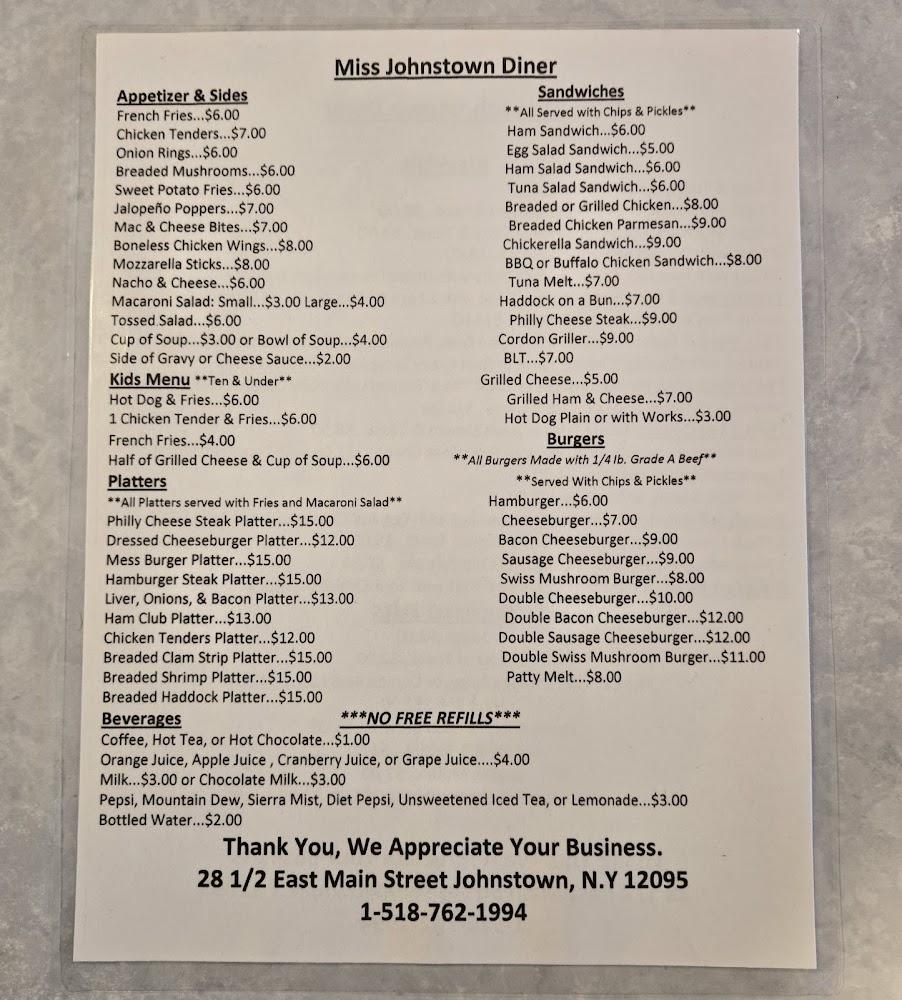 Welcome to Miss Johnstown Diner, where comfort food meets a cozy atmosphere! Located at 28 E Main St, Johnstown, NY, this beloved diner serves up delicious breakfast, lunch, and dinner options in a relaxed setting that’s perfect for families, students, and tourists alike. Enjoy an excellent cup of coffee or explore our wide selection of teas while savoring local specialties. With amenities like takeout, delivery, and wheelchair accessibility, we cater to all needs. Join us for a late-night bite or a leisurely brunch, and experience the warmth of our historic diner that keeps the community coming back for more!